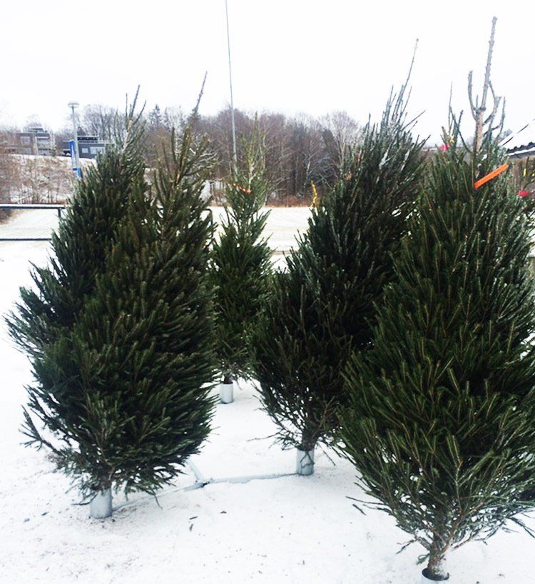 De siste årene har vi kjøpt inn både gran og edelgran fra 5 eksterne produsenter. De fleste trærne hogges innenfor en times kjøring fra gården. De er dermed relativt kortreiste.